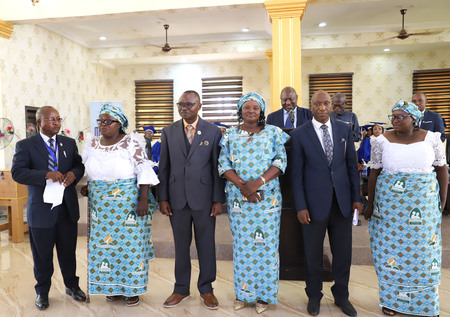 De gauche à droite : le Secrétaire Exécutif, le Président et le Trésorier de la NNUC, accompagnés de leurs épouses, lors des prières de consécration.