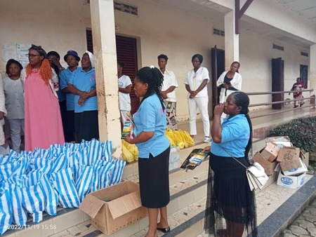 Ce même sabbat, sous la direction de Dame Ngono Amba Irène, directrice des Ministères de la Fédération du Centre Sud, les femmes ont effectué une sortie de bienfaisance à l'hôpital du district de santé de Sangmélima. Elles ont remis aux malades internés ainsi qu’au personnel soignant 100 paquets. Chaque paquet était constitué d’un livre missionnaire de l'année 2022, une revue adventist World, deux morceaux de savons, 6 sachets de savon en poudre, une bouteille d’eau minérale, deux rouleaux de papier hygiénique, deux paquets de pâte alimentaires.