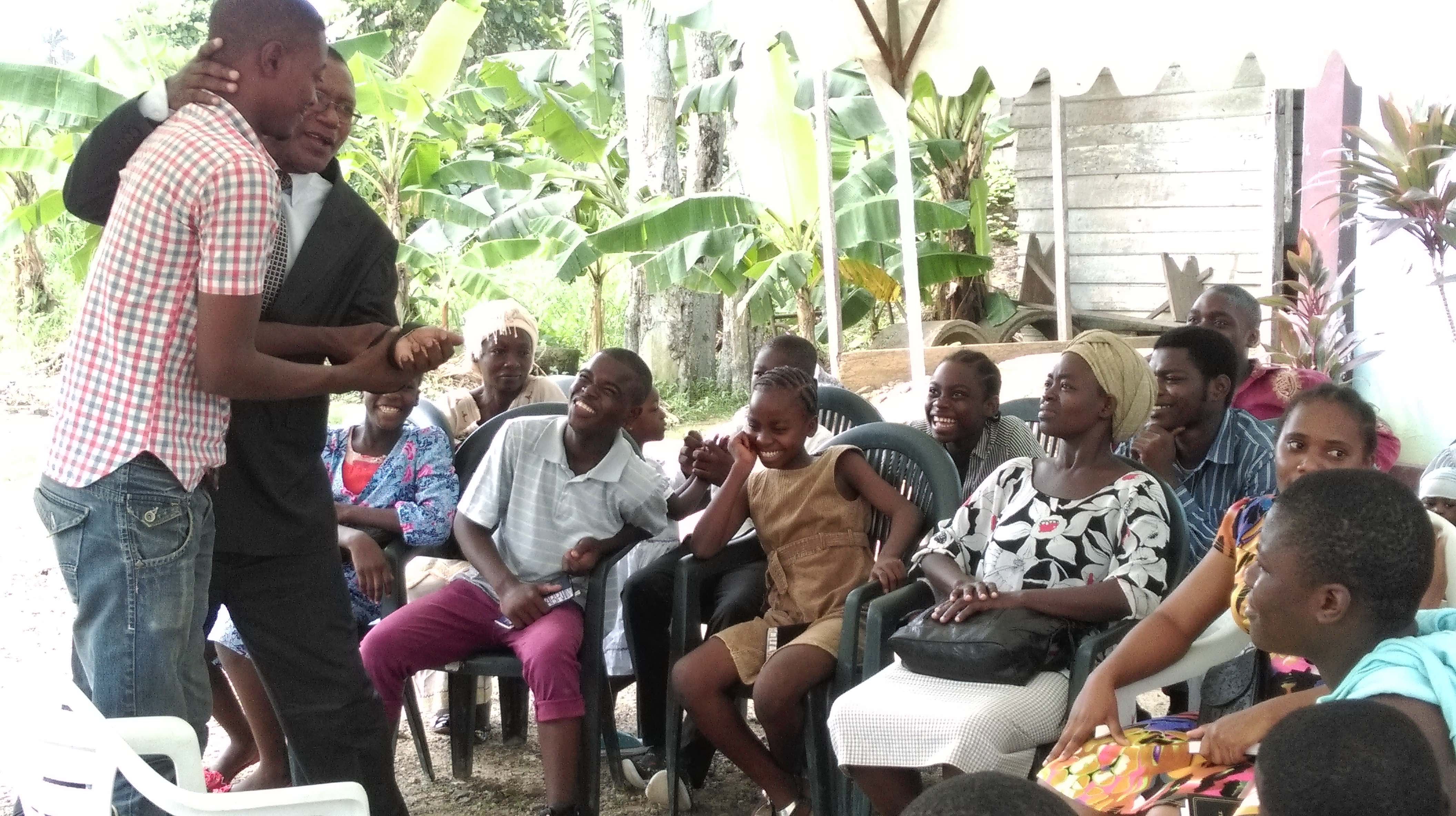 Honorary minister Chentu Jean demonstrating baptism to the candidates in Bonaberi (Douala)