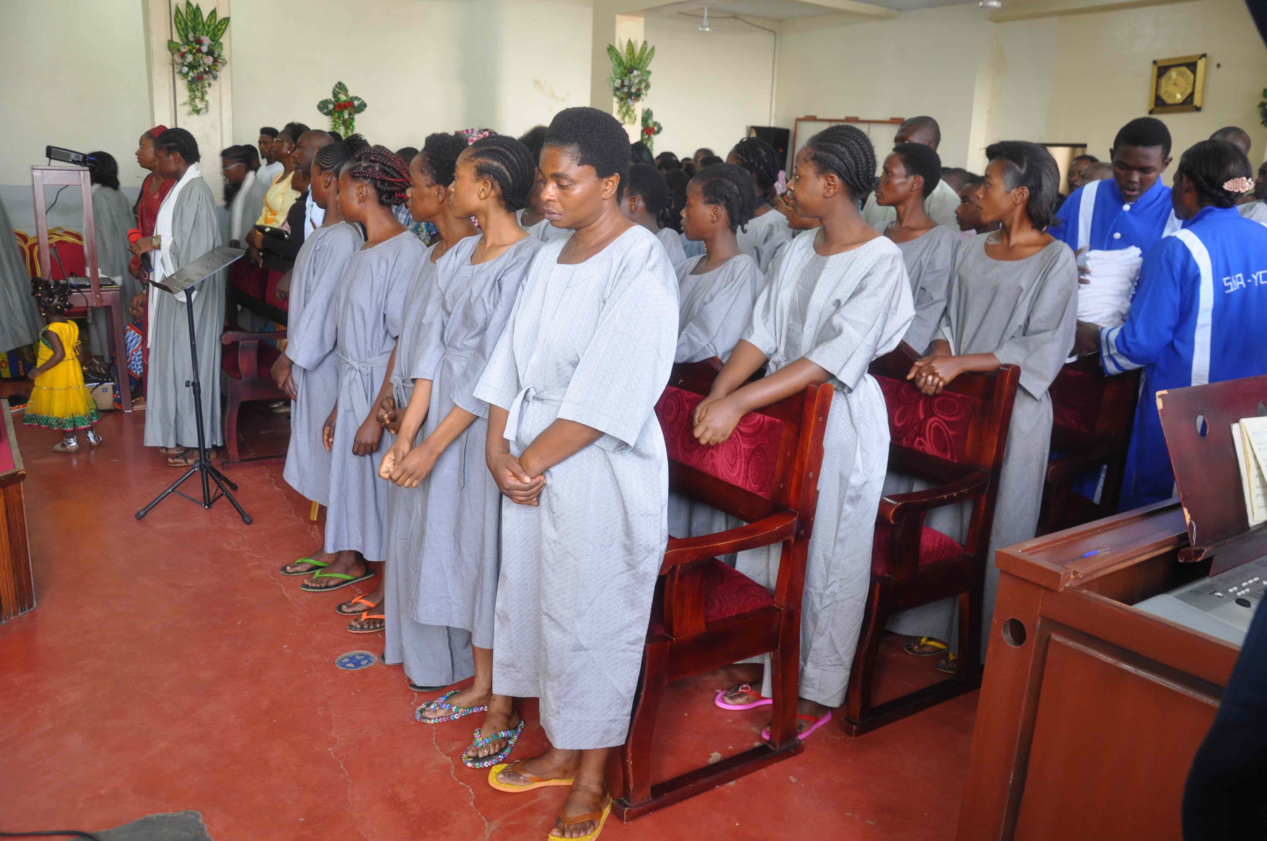Candidates for baptism stood for vows in Yaounde central Church.
